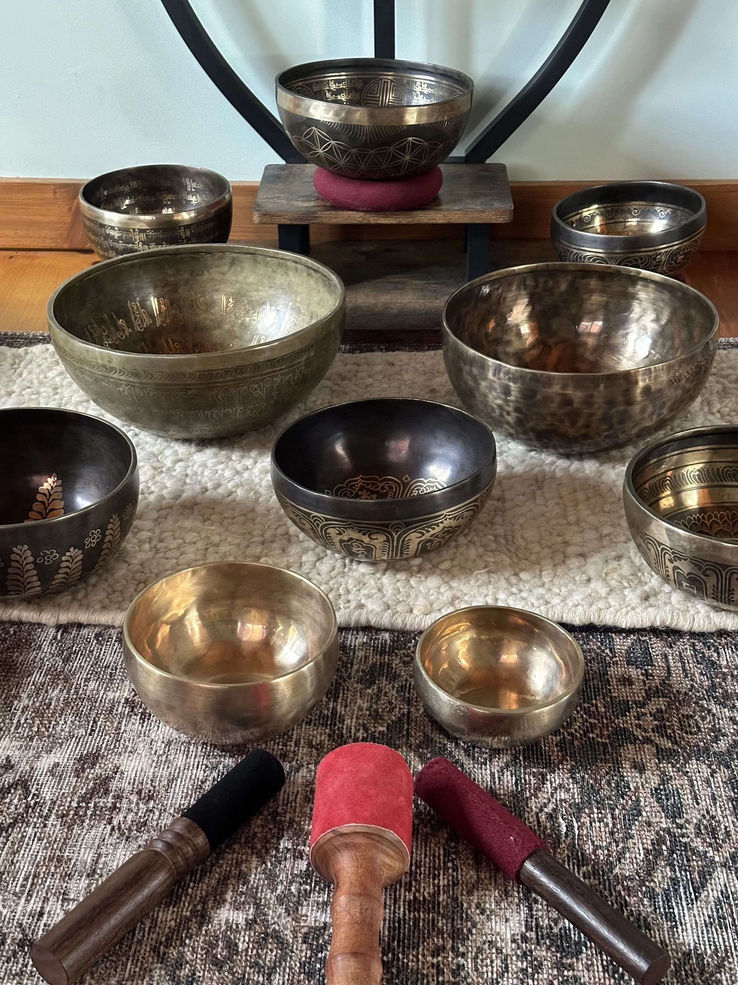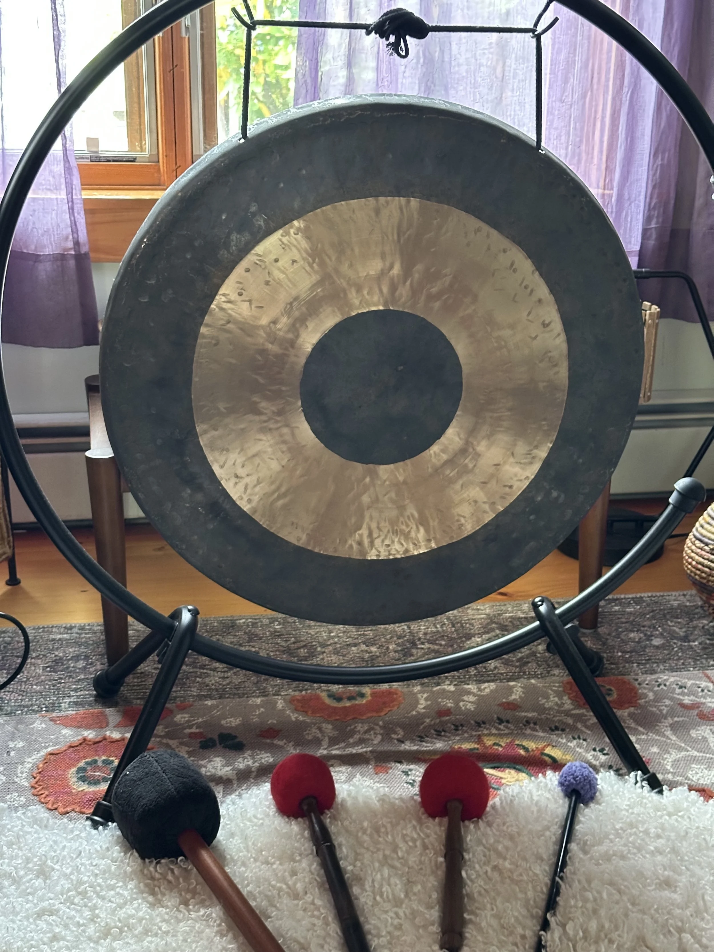 Through the gentle use of sacred instruments such as chimes, himalayan bowls, gong and tongue drum, I offer a deeply restorative listening experience. Everything in the universe is made of energy and has a natural frequency of vibration from the galactic cosmos down to a single cell in the body and smallest particle. Sound can raise our cellular vibration impacting our nervous system, engaging relaxation, inhibiting the stress and pain response.
