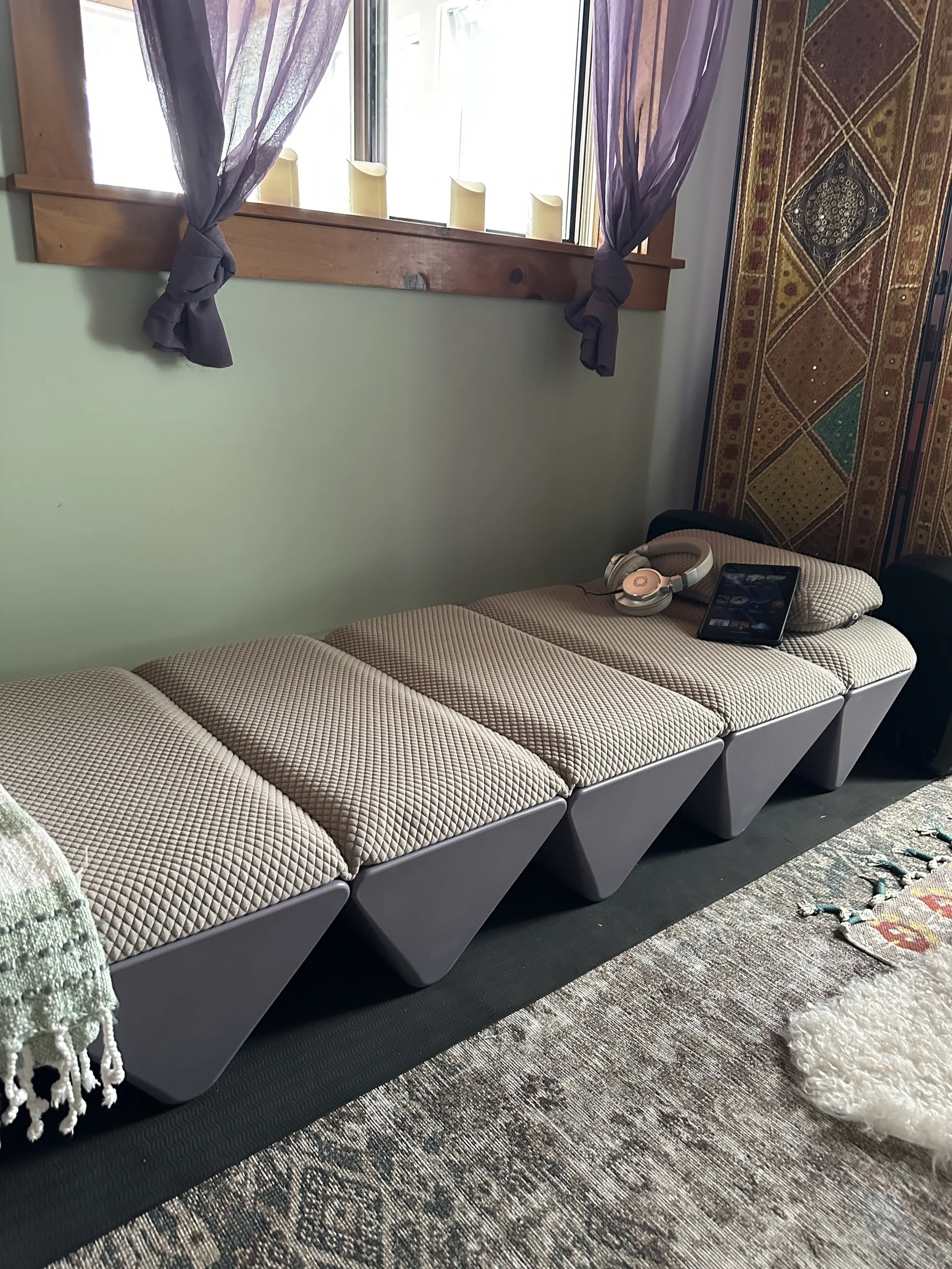 OPUS Acoustic Vibrational Sound Bed Meditations. Offering vibroacoustic technology on a bed containing five zones of vibration designed to give you a multi-sensory immersive experience for emotional fitness. Listen to guided meditations, immersive remixes of favorite music, frequency healing, brainwave entrainment, breathwork recovery energy, focus and more..